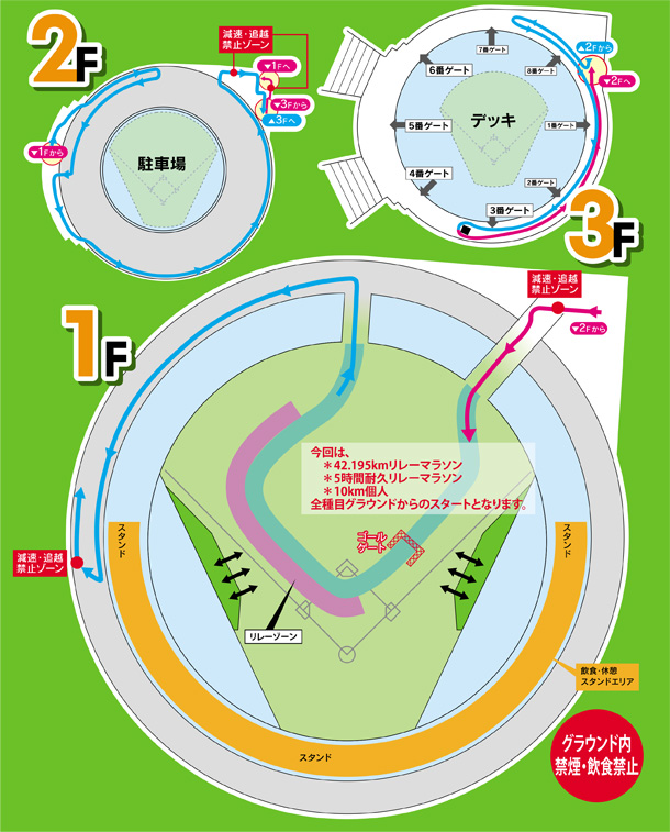 - 42.195kmリレーマラソンの部は、トータル17周でゴールとなります。