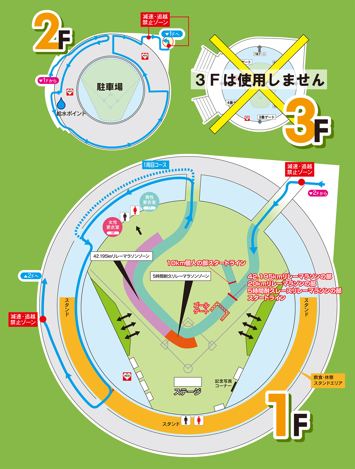 • 42.195kmリレーマラソンの部は、トータル17周でゴールとなります。