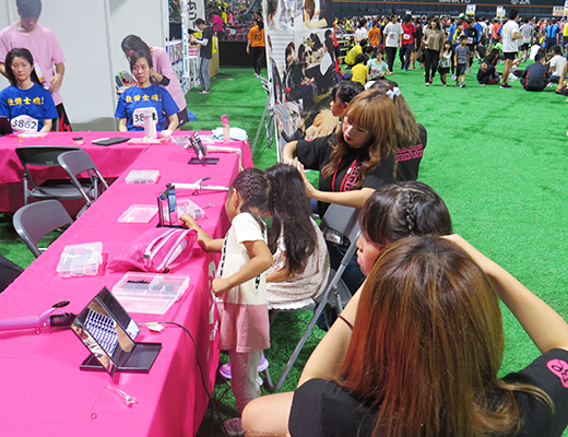 走って乱れた髪のままでドームから外に出るのはチョットねぇ⋯という女性の皆さんのお悩みを解消すべく、女性限定で簡単ヘアアレンジ。(先着順・人数限定)