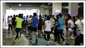 グラウンドやドーム外周(3階)を走っているときはにぎやかで声援もあるけど、駐車場(2階)は静かで声援も少ないので、走っていて寂しい⋯