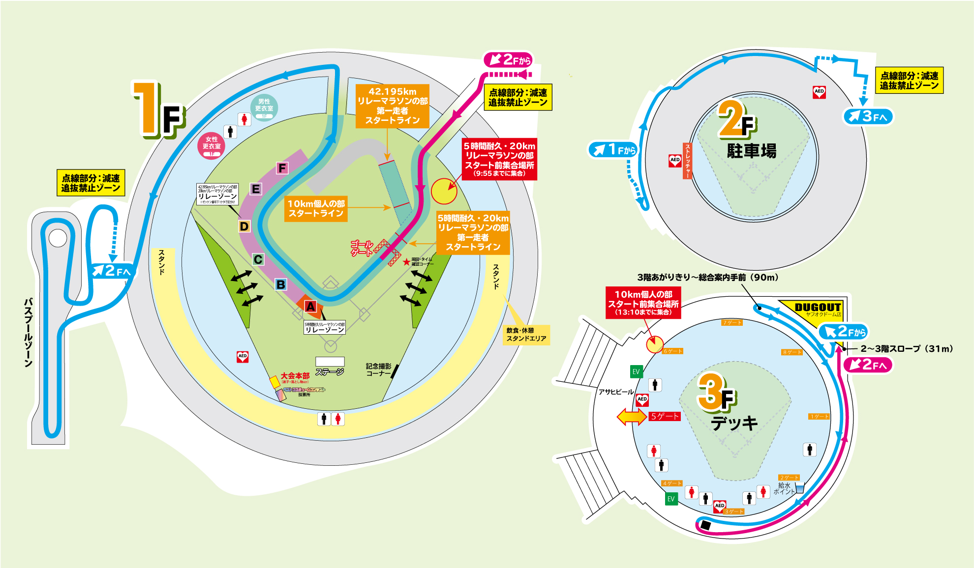 - 20kmリレーマラソンの部は、トータル10周でゴールとなります。